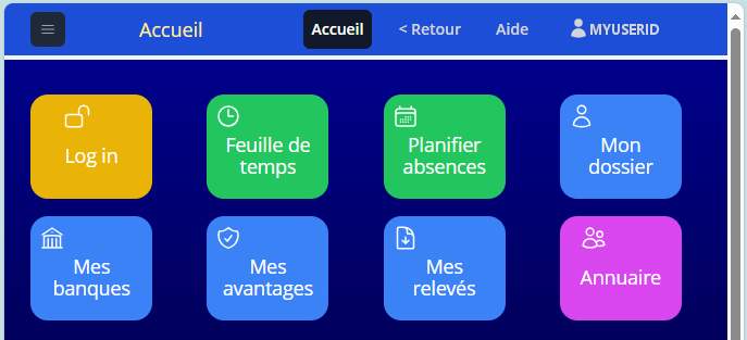 Votre page d'accueil ressemblera à ceci. Les options peuvent être différentes en fonction de la configuration de votre entreprise et de votre accès.